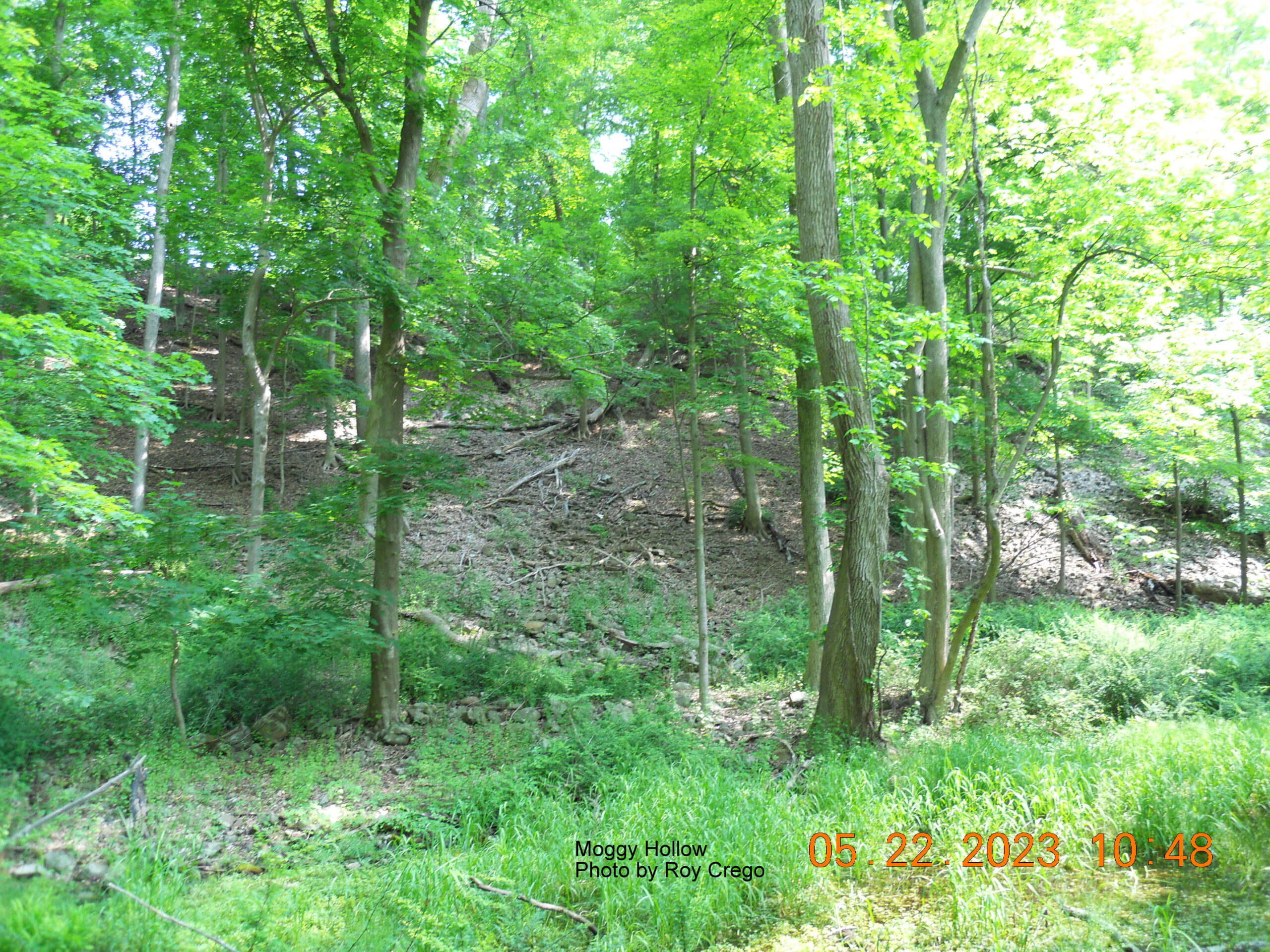 The photo below shows the bottom of Moggy Hollow looking northwest up toward Liberty Corner Road.