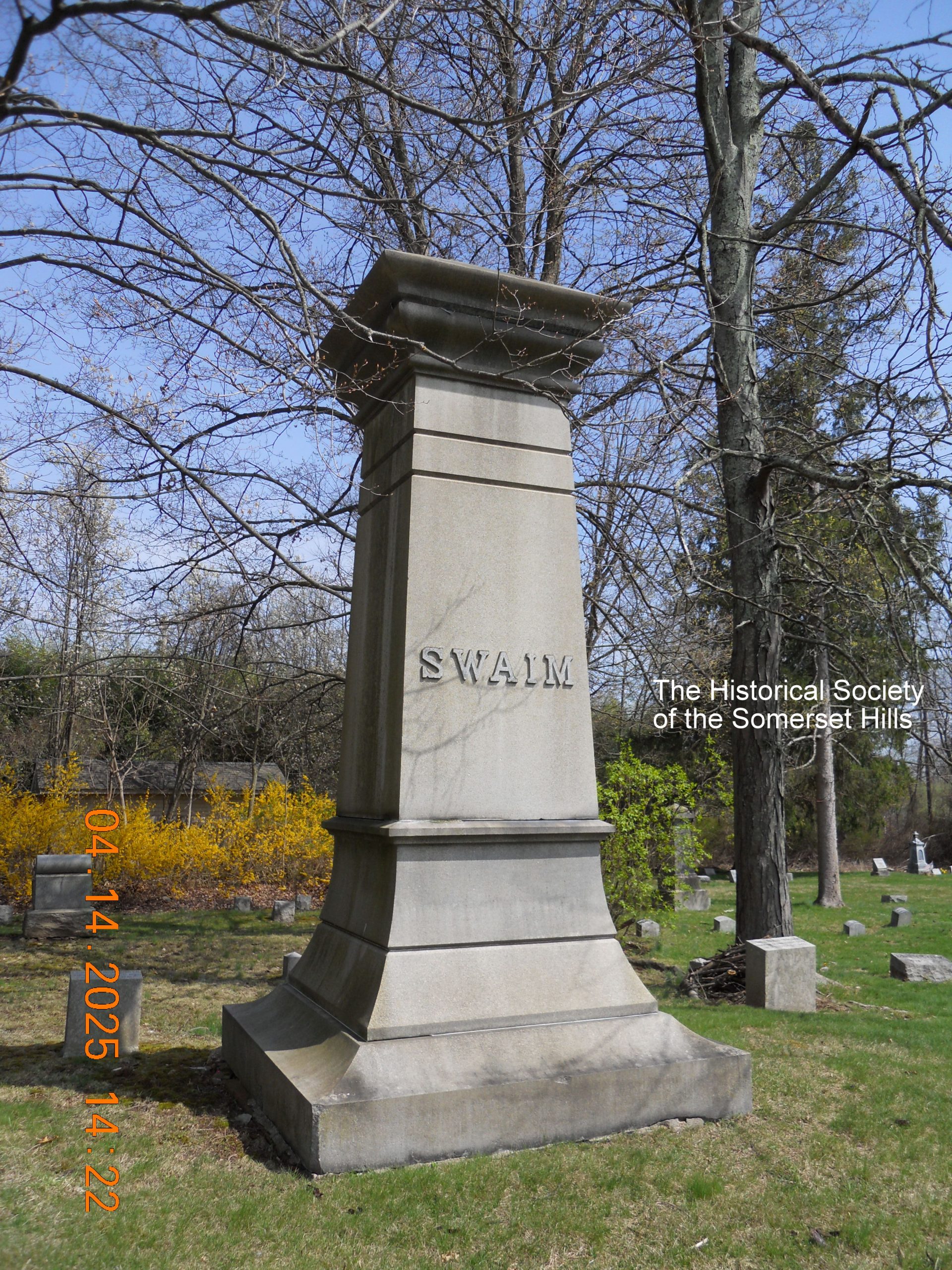 If you run, bike, or walk your dog through Evergreen Cemetery in Basking Ridge, you may have noticed a large monument at the northern end near the railroad station. The Swaim family monument dwarfs its neighbors, including that of Ferdinand Van Dorn of Van Dorn’s Mill fame.
