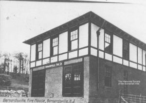 Next time you’re in downtown Bernardsville, NJ, take a look at 35 Mill Street. The building was built in 1906 as the new firehouse to replace the old one at 1 Anderson Road (site of the current Bernardsville Library). Frederic P. Olcott (1841-1909), Bernardsville’s great benefactor, donated funds to purchase the land. The real photo postcard (RPPC) shows the firehouse around 1908 with an undeveloped hillside up toward Claremont Road. The building served as firehouse until 1958.