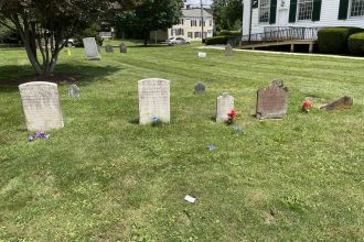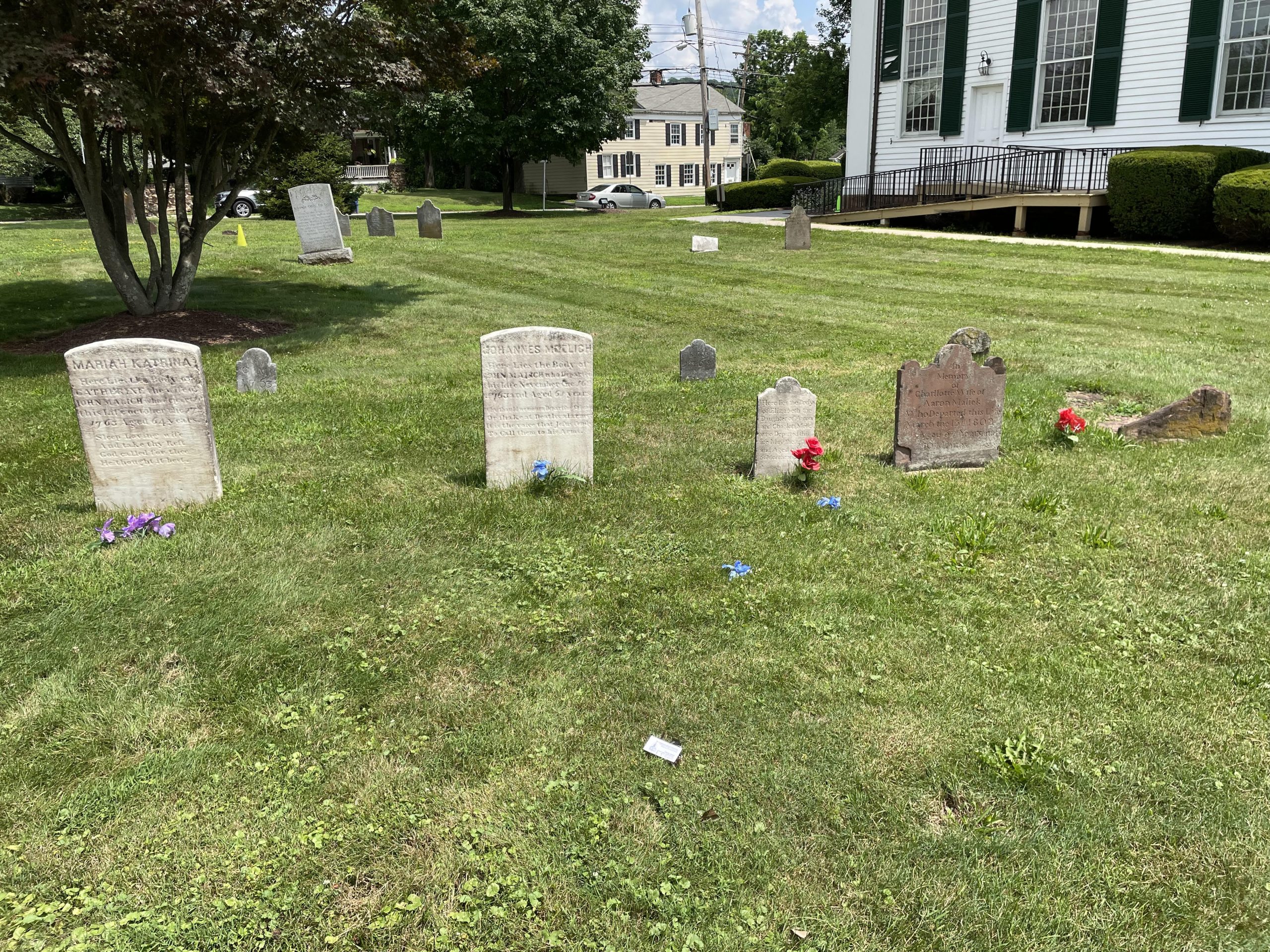 The non-stop traffic and the general hustle and bustle of modern life swirl around the small historic cemetery next to the Pluckemin Presbyterian Church. Most of us rush by in cars without taking any notice. But men, women and children who helped create and shape New Jersey and our country as a whole inhabit that