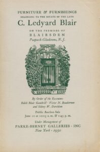 Ledyard Blair died in his 740 Park Avenue apartment in 1949, forty-six years after Blairsden was completed. The following year, New York’s Parke-Bernet Galleries sold most of the contents of the mansion at a two-day public auction held on site.