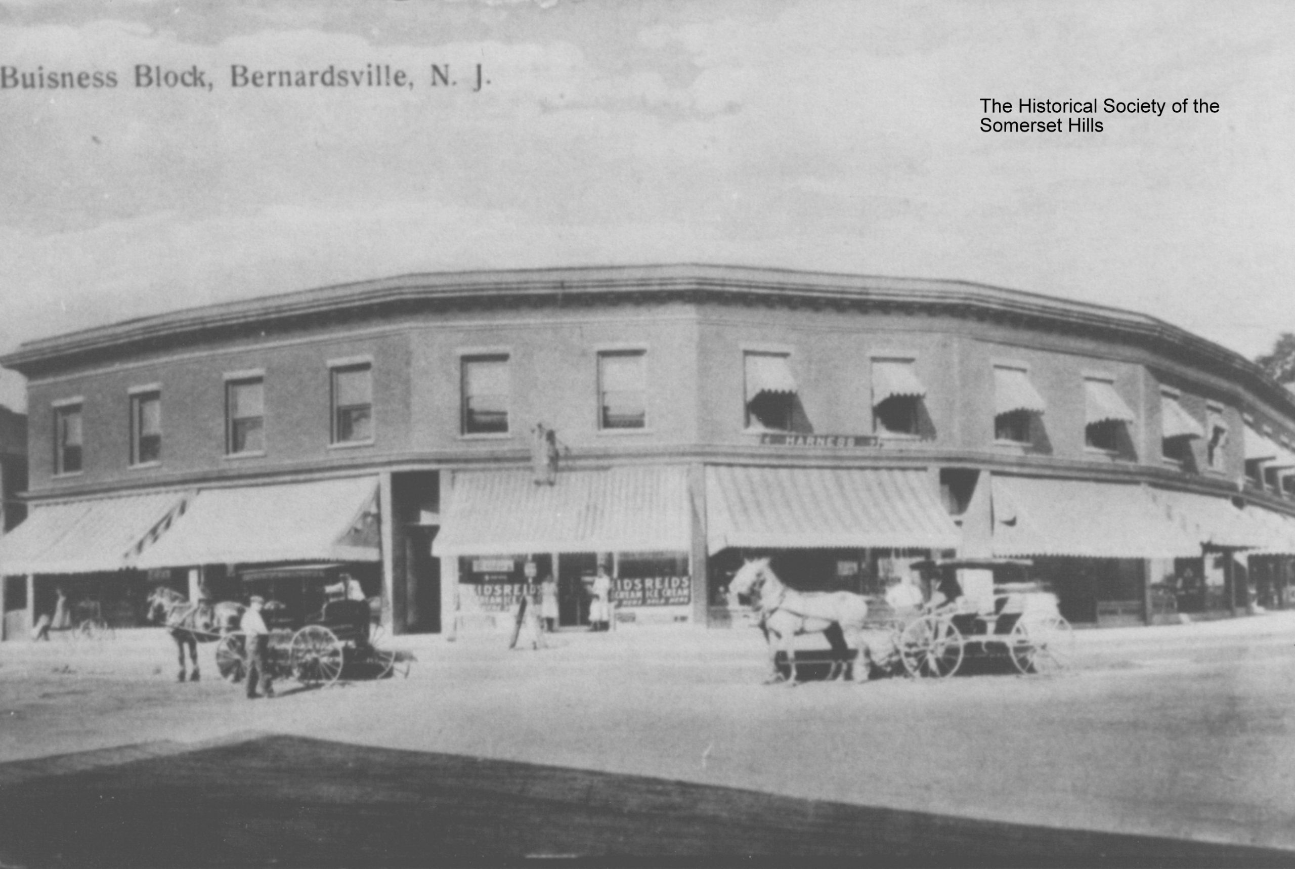 Parking your carriage on Olcott Square in Bernardsville, NJ, around 1908 was apparently no problem. These two are shown in front of the Westlecraft Block, named for local builder Charles Westlecraft. The site is occupied today by The Coffee Shop, Buona Pizza, and other businesses. The Westlecraft Block was built around 1904 and contained businesses