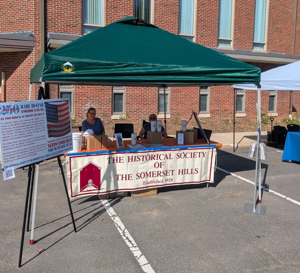 Representatives from The Historical Society of the Somerset Hills (THSSH) and our friends at Ross Farm attended the 2025 Mayor’s Fall Festival at the Municipal Building in Basking Ridge. It was a spectacular Fall day and visitors to the booth were able to learn about the organizations, purchase “Basking Ridge 1717” water bottles, and contribute to the Save the Flag Campaign to restore a historic U.S. Flag. THSSH trustee Jon Booth led free guided tours through the historic Astor Mansion.