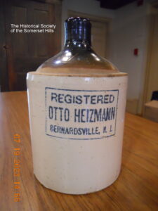 From previous research on Otto Heizmann (1879-1936), we were able to date both the bottle and jug to around 1911-1913. Otto was born in Switzerland and by the 1910 U.S. Census was a wholesale liquor dealer living in Stirling, Morris Co., NJ. In December 1911, Heizmann received a wholesale liquor license from Somerset County, confirming a move to Bernardsville. Around 1913, Otto and his family moved back to Switzerland where his son, Bernard, was born 13 July 1914. The family returned to the U.S. by the 1930 Census, which shows Otto living in Syracuse, NY.