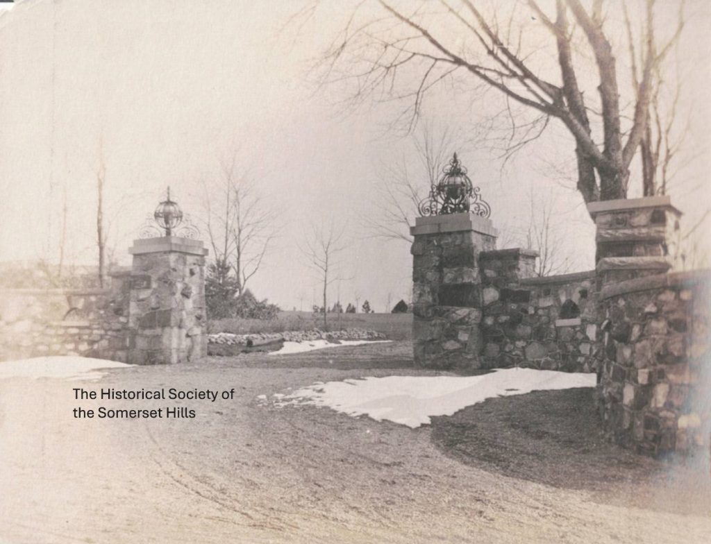 ANSWER: The gate is found on Route 202 in Far Hills. Going north toward Bernardsville, it is on the right before you get to Lake Rd. The gate stands at the entrance to Overleigh, the mansion built in 1894 by John Milton Dillon (1868-1911). See Catalog Record.